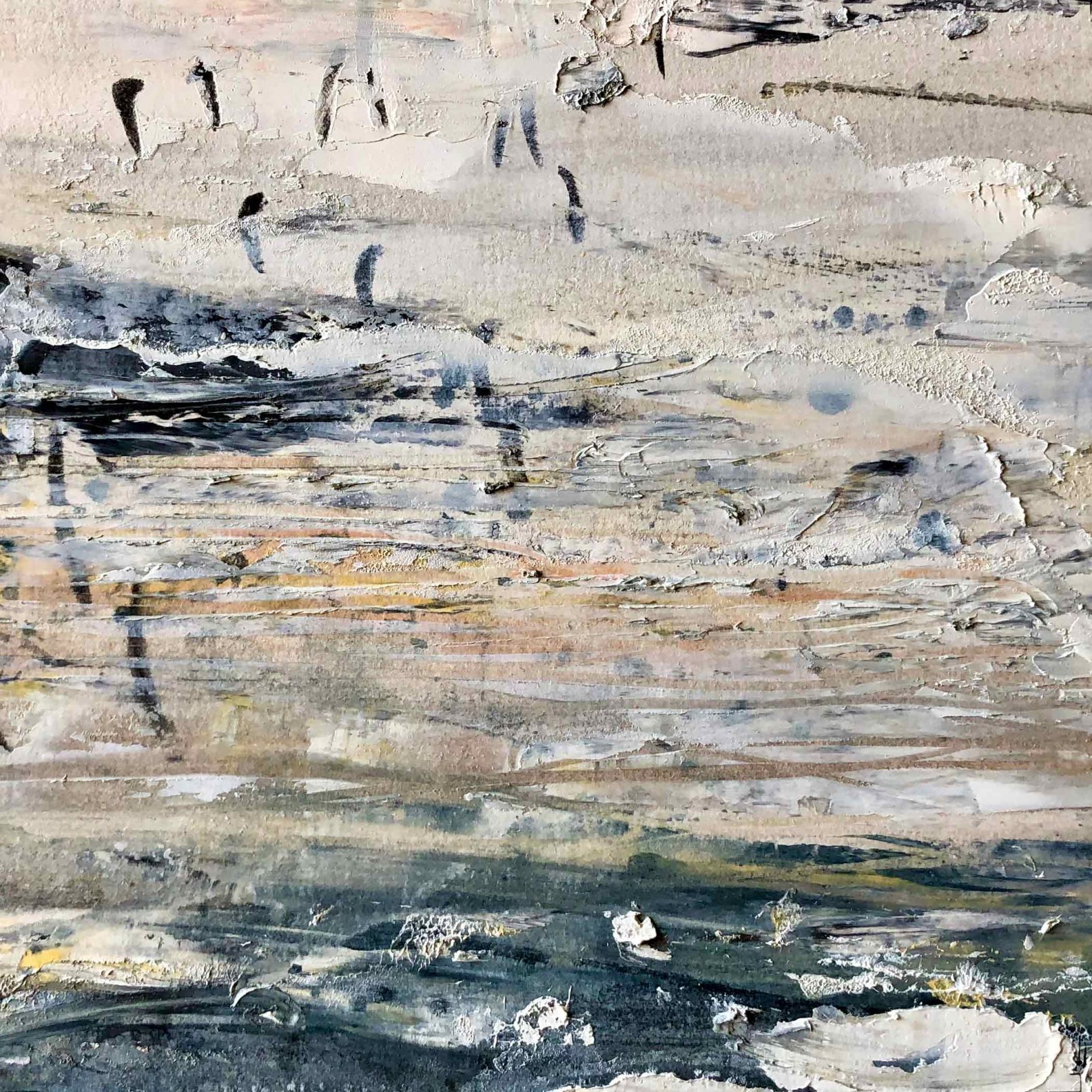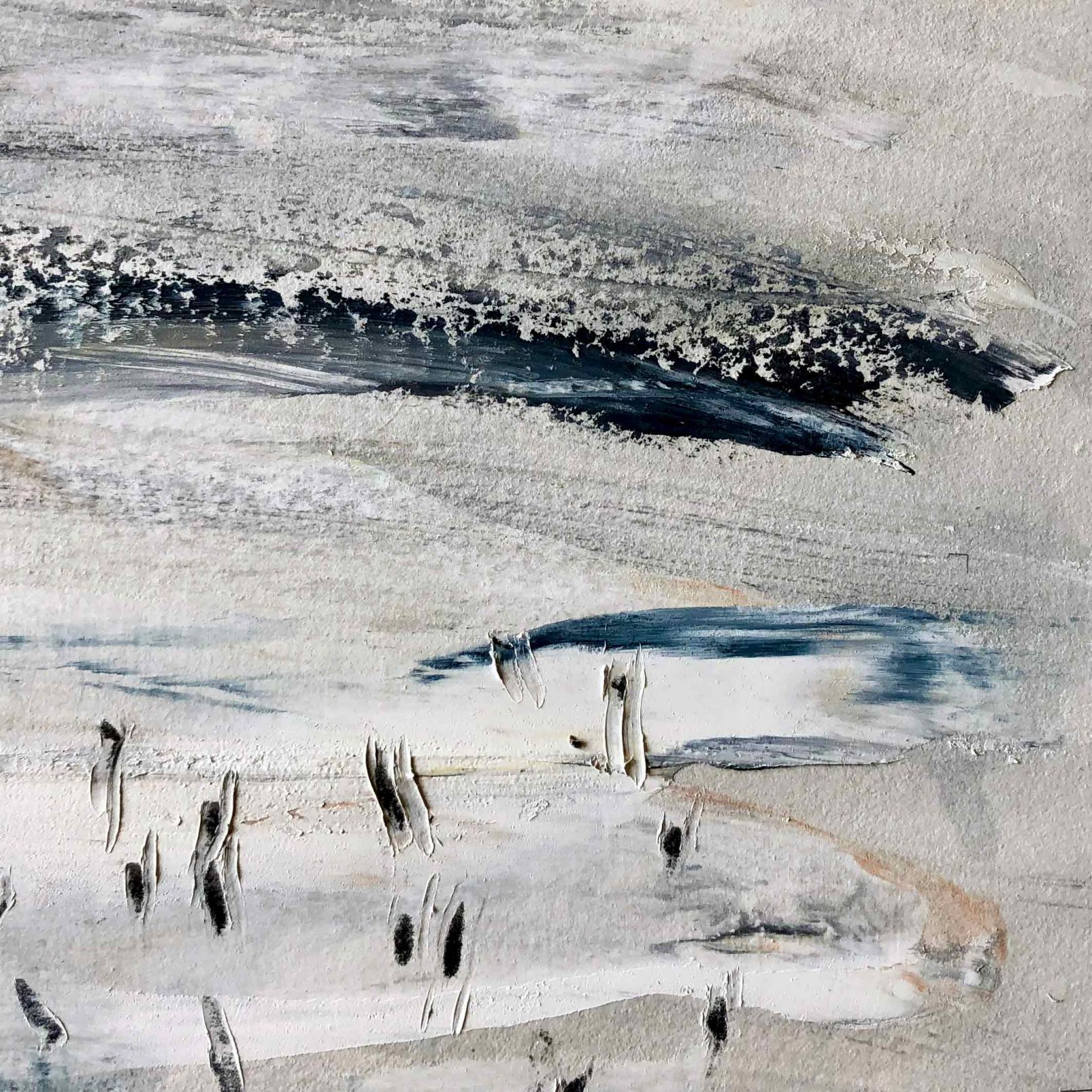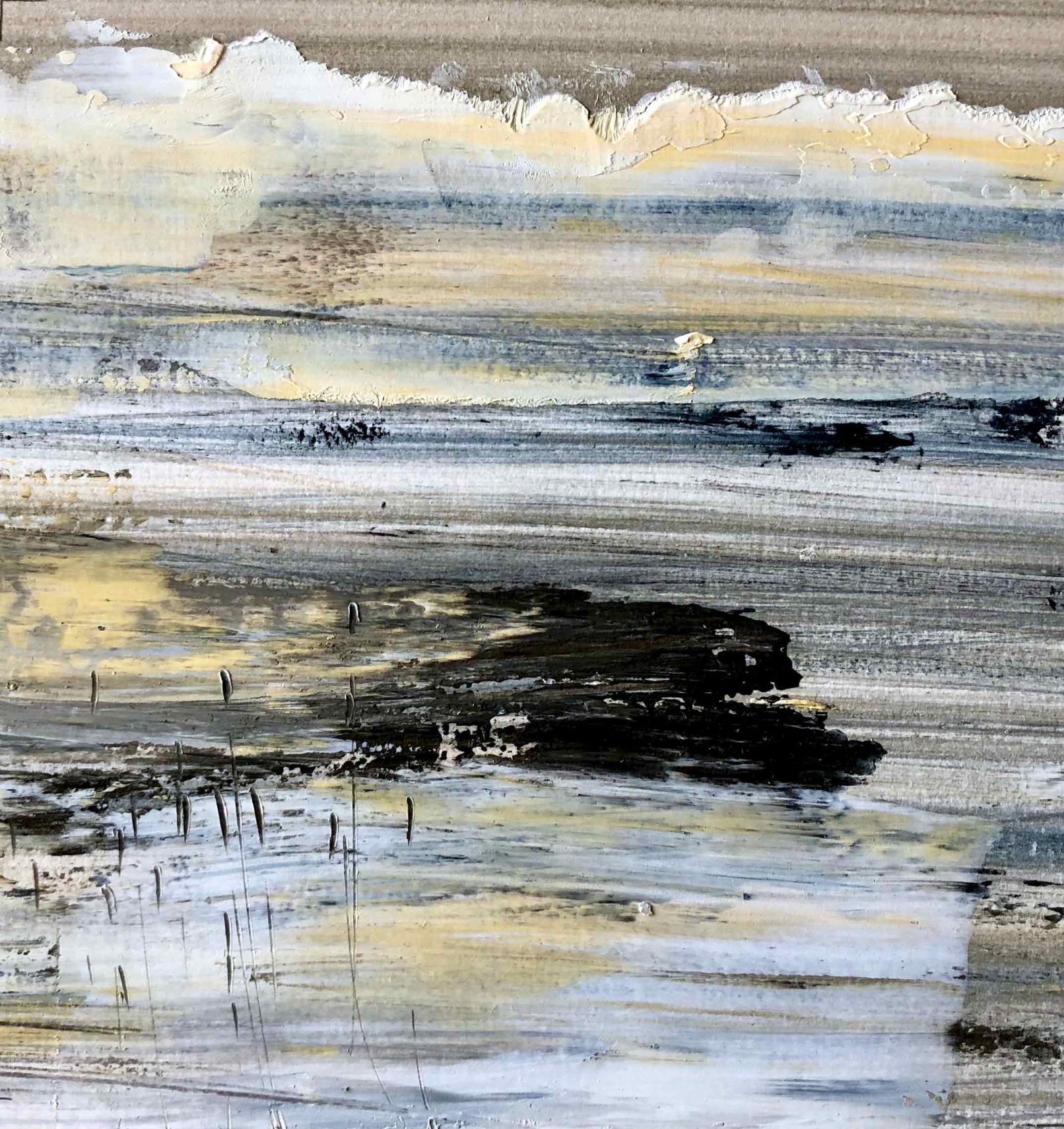 A new body of Beach Abstract paintings explore the sensation of coastlines and estuaries where tides, birdlife and weather suggest exploratory spontaneous mark-making. These are small oil paintings on paper and range in size and price. (More available than shown.)