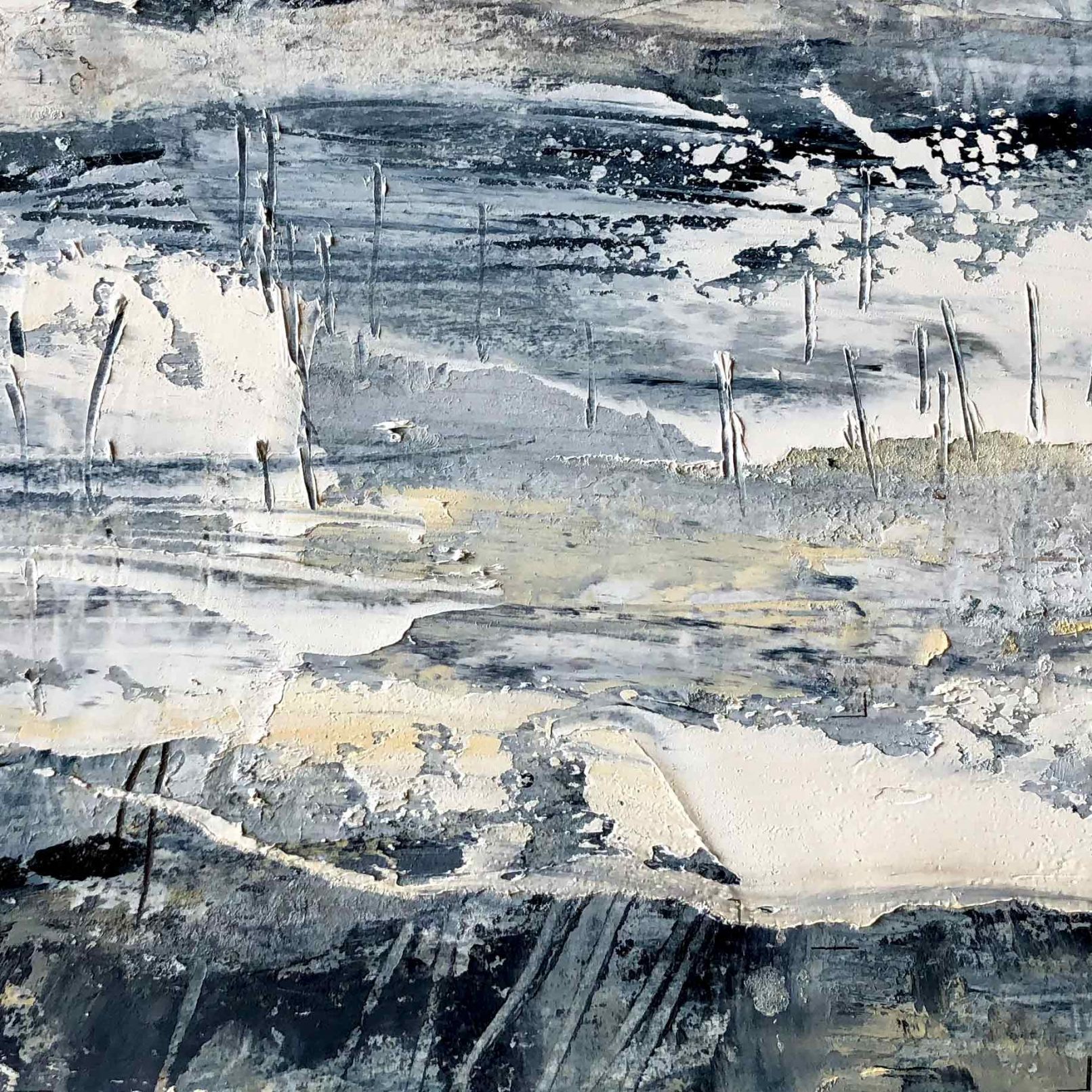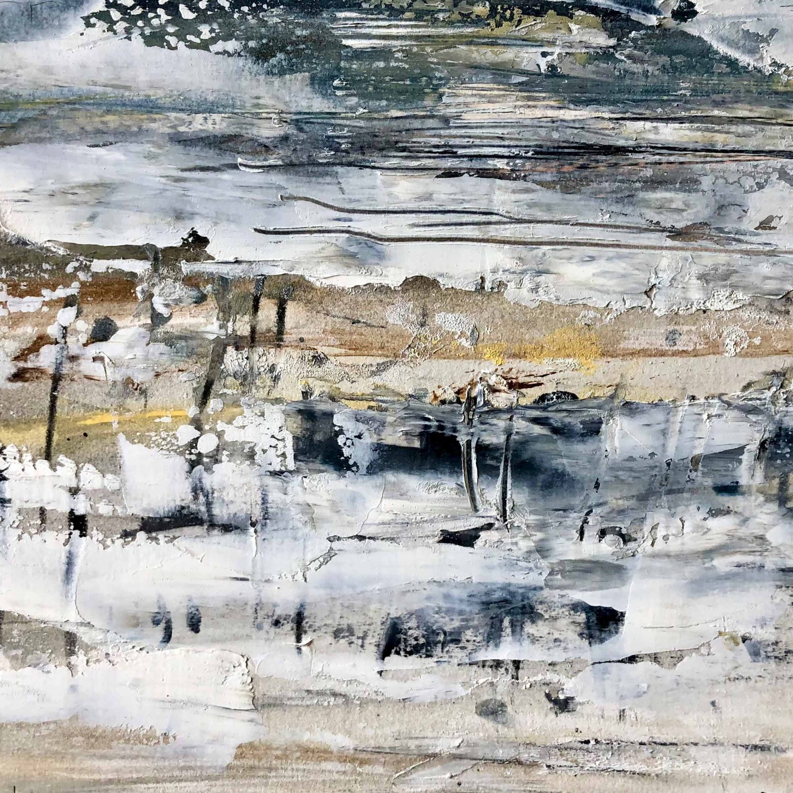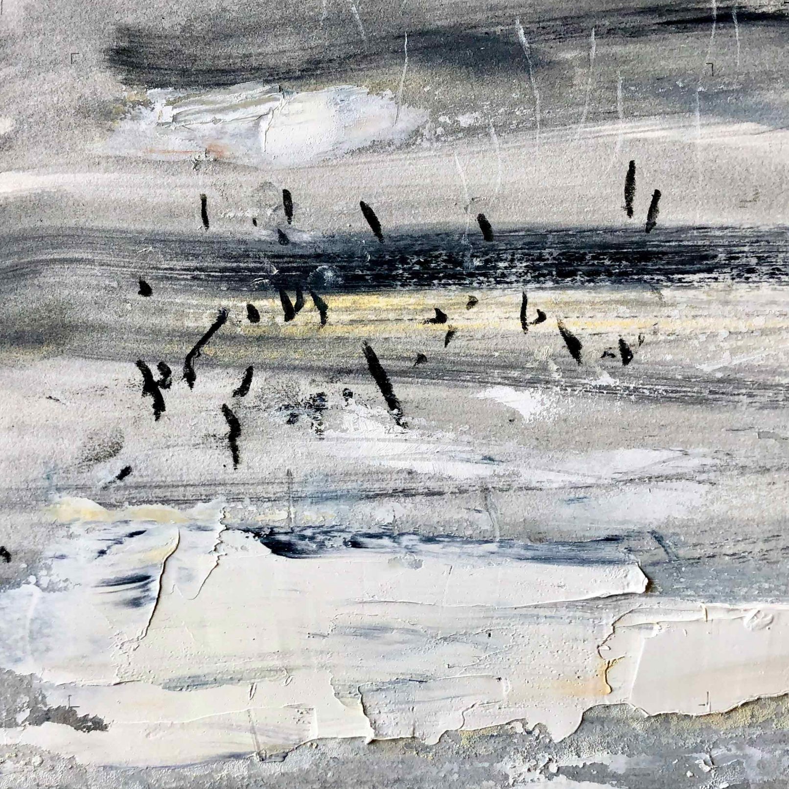 A new body of Beach Abstract paintings explore the sensation of coastlines and estuaries where tides, birdlife and weather suggest exploratory spontaneous mark-making. These are small oil paintings on paper and range in size and price. (More available than shown.)